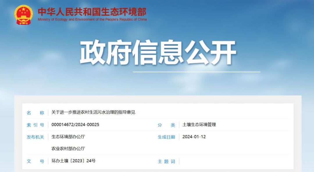 ▼《关于进一步推进农村生活污水治理的指导意见》。图片来源:生态环境部