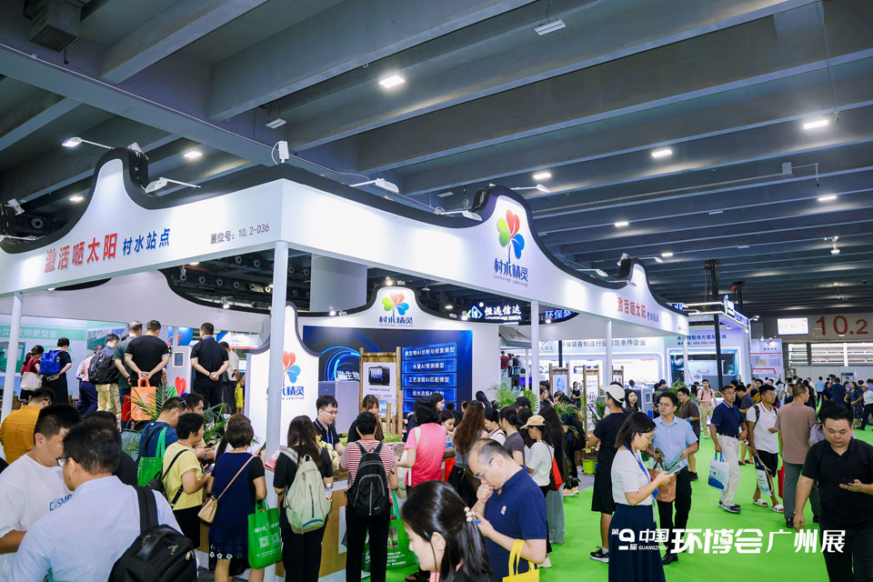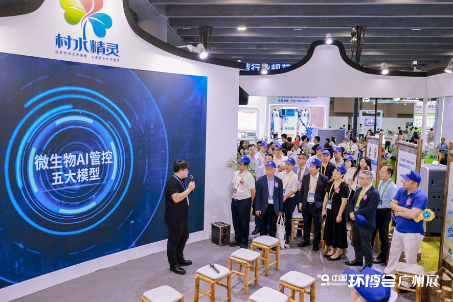 这个独具一格的展台,属于新大禹环境科技(广东)集团股份有限公司(下称“新大禹”)。他们将一座“美丽乡村”农村污水的真实场景复刻到了现场,其中的焦点,是“村水精灵”这款智能化新产品。它的独特卖点,是“激活晒太阳”的村水站点,破解村级污水处理“用不了、用不起”难题。