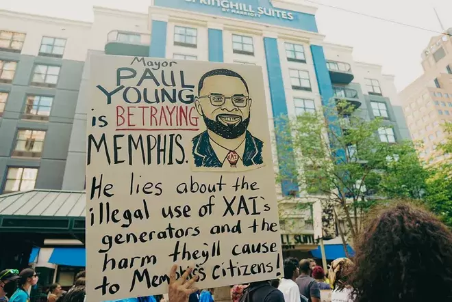 ▼2025年6月17日,老虎反污染组织游行抗议孟菲斯市xAI项目。图片来源:未来新水务