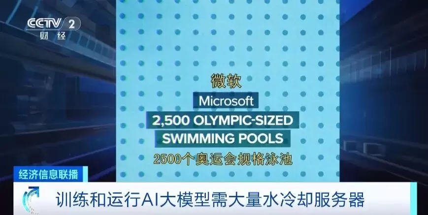 ▼2022年,谷歌数据中心和办公室用掉了总计56亿加仑水,相当于8500个奥运会规格的游泳池。图片来源:央视网