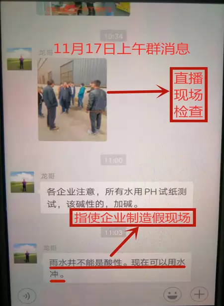 到了11月17日,督察组开展现场检查,检查情况还被“龙哥”在微信群内“现场直播”了。