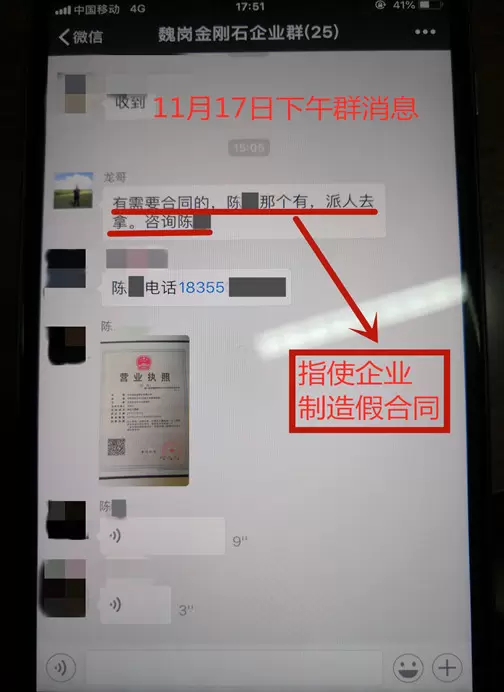 到了下午,督察组又发现了危险废物非法处置的问题,“龙哥”又在微信群里发话:“有需要合同的,陈某那个有,派人去拿”。
