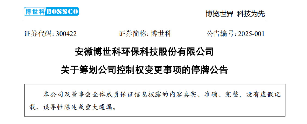 2025年刚开年,就传来了博世科筹划控制权变更的消息。1月13日晚,博世科发布公告称,公司时任控股股东宁国市国有资本控股集团有限公司正筹划重大事项,可能导致公司控股股东及实际控制人发生变更。