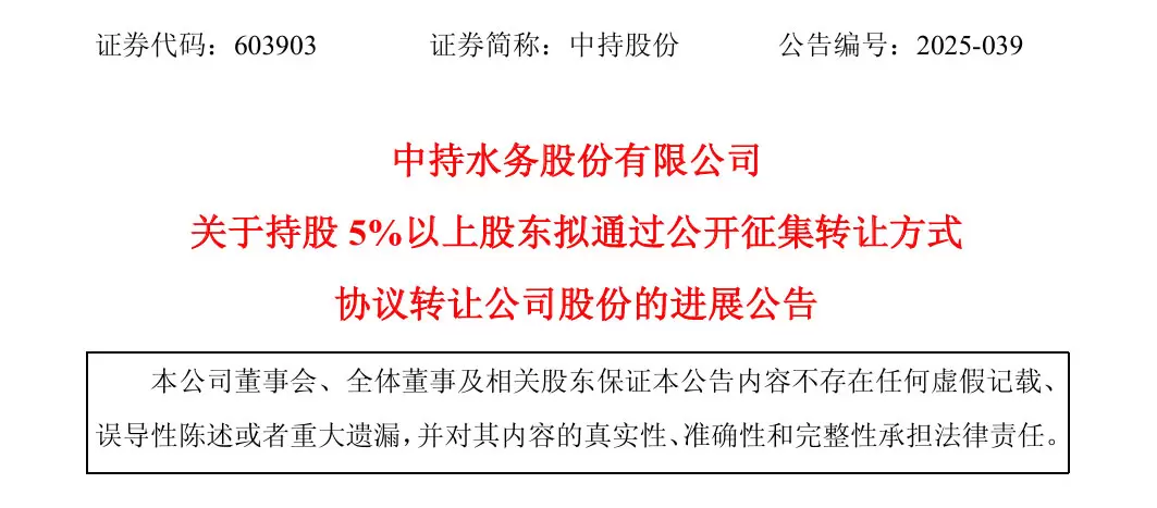 10月13日,中持股份股东长江环保集团通过公开征集方式,协议转让其所持中持股份的全部股权。到了10月26日,首个公开征集期结束,有一家意向受让方提交了申请。