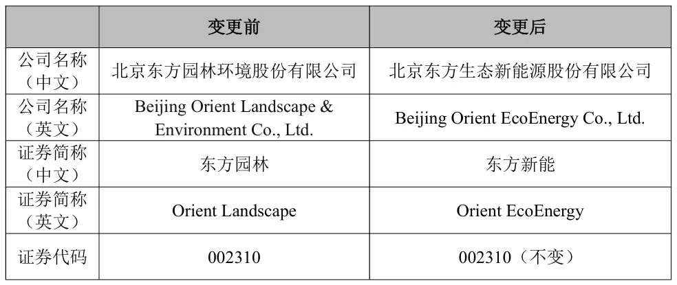 公司名称拟变更为“北京东方生态新能源股份有限公司”,证券简称也变更为“东方新能”,证券代码不变。