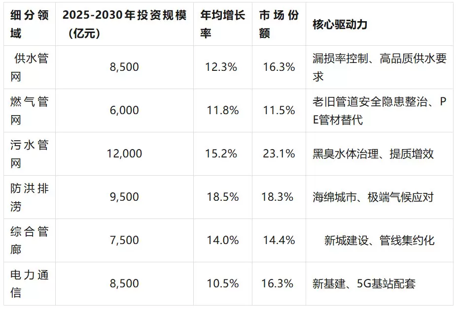 也就是说,2025-2030年期间,每年都会有超过1万亿的投资砸向地下管网。
