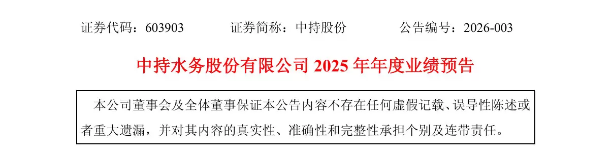 无独有偶,同一天,国中水务也发布了2025年年度业绩预亏公告,然后表示,公司股票可能被上海证券交易所实施退市风险警示。