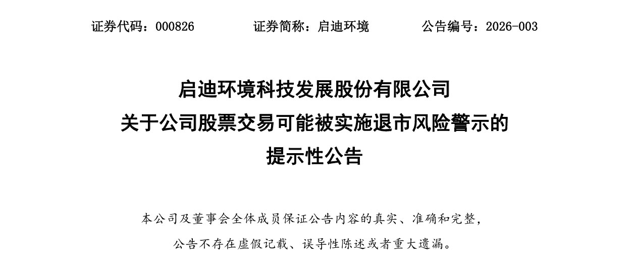 1月29日晚,启迪环境发布公告,经公司财务部门初步测算,公司预计2025年度期末归属于母公司净资产可能为负值。