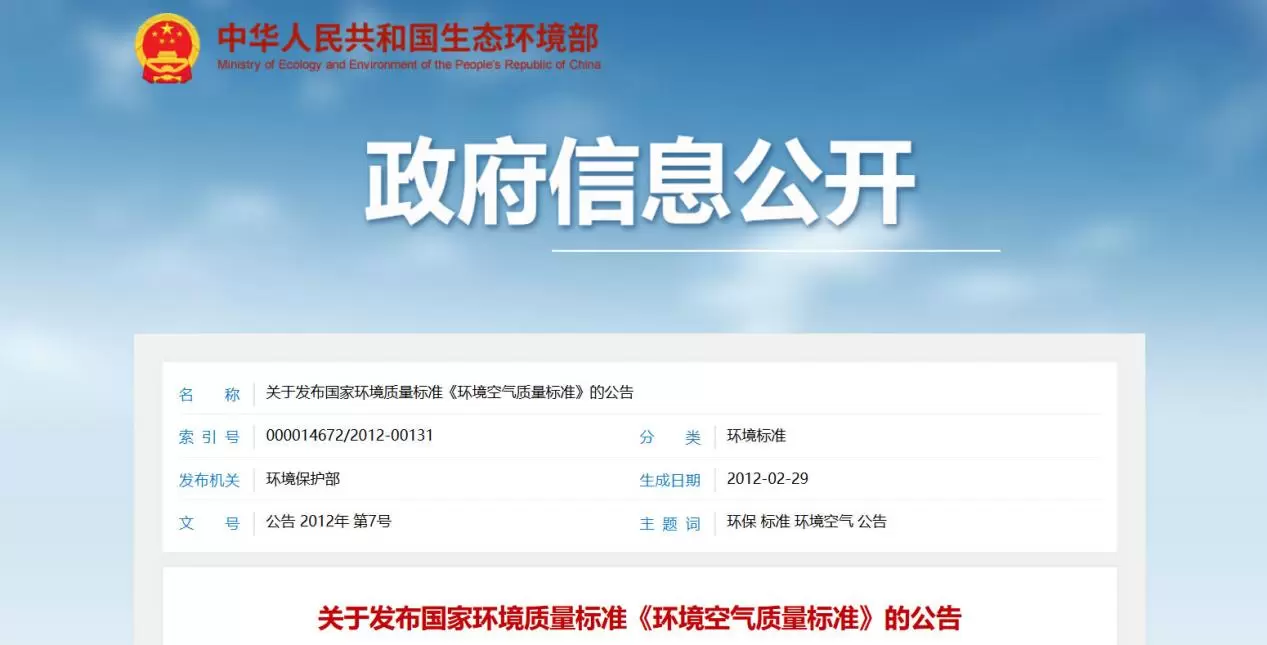 上一版《环境空气质量标准》(GB 3095—2012),发布于2012年。