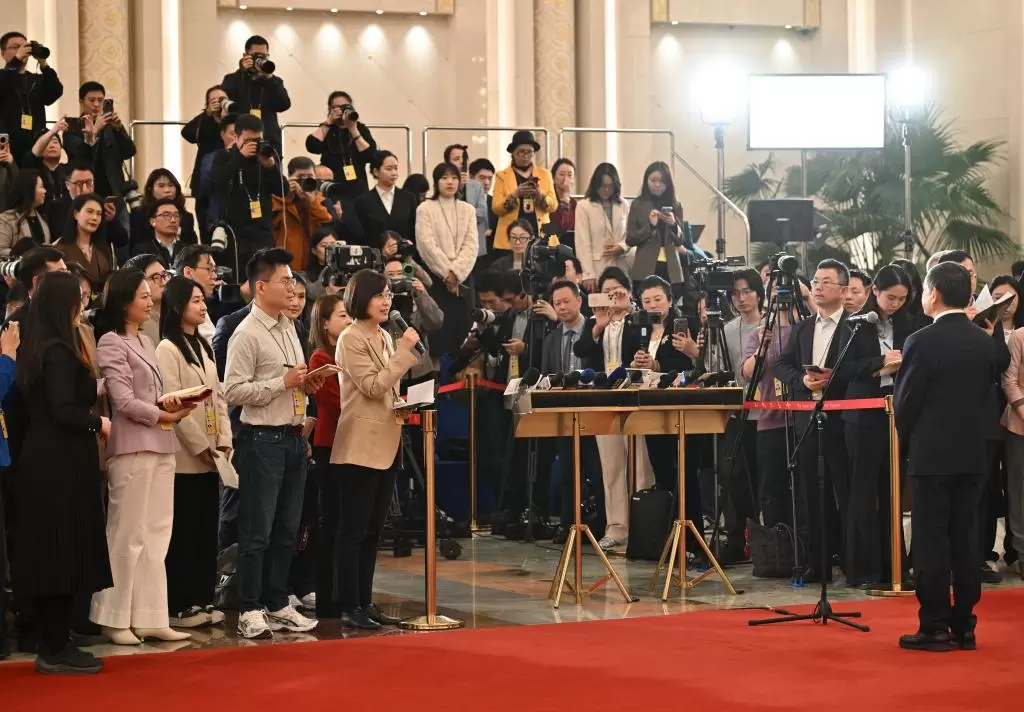 3月12日下午,十四届全国人大四次会议第三场“部长通道”在人民大会堂举行,生态环境部部长黄润秋接受记者采访。