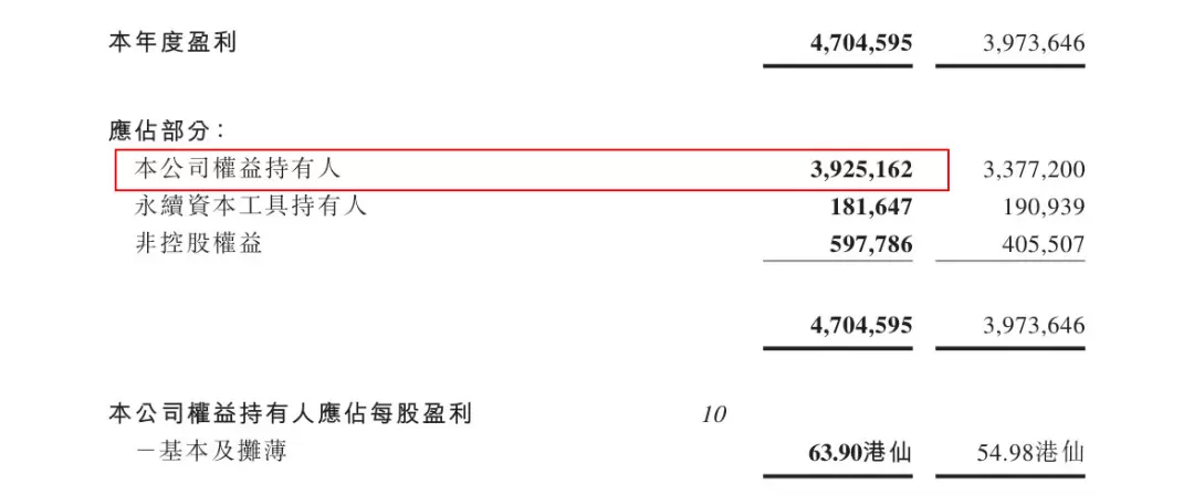 2023年,权益持有人应占盈利约44.29亿元,同比再次下降4%。