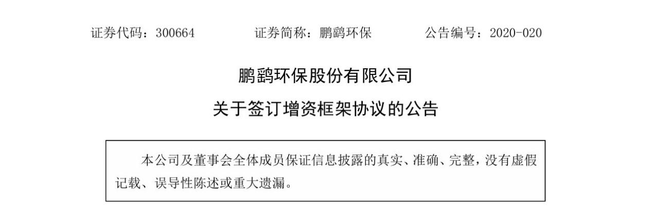 2020年2月4日晚,鹏鹞环保发布《关于签订增资框架协议的公告》称,为支持新冠疫苗药品研发生产类企业,鹏鹞环保决定以自有资金出资3000万元投资参股艾棣维欣,将持有艾棣维欣7.89%股权。