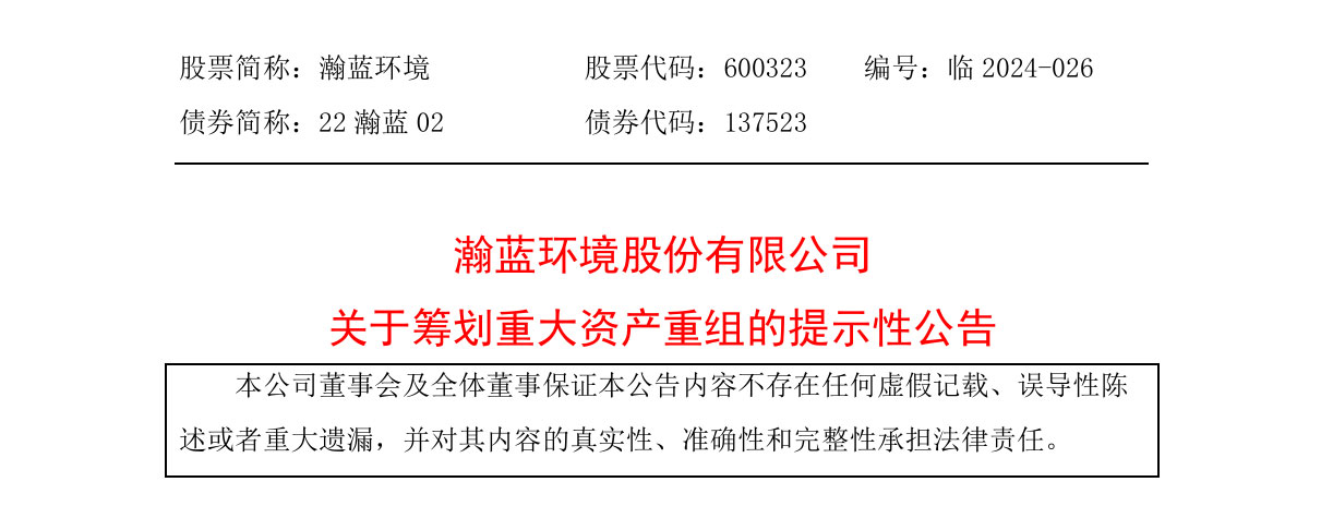 2024年7月7日,瀚蓝环境发布重要提示公告,拟联手广东省国资委及佛山市南海区国资,通过私有化方式收购港股上市公司粤丰环保。